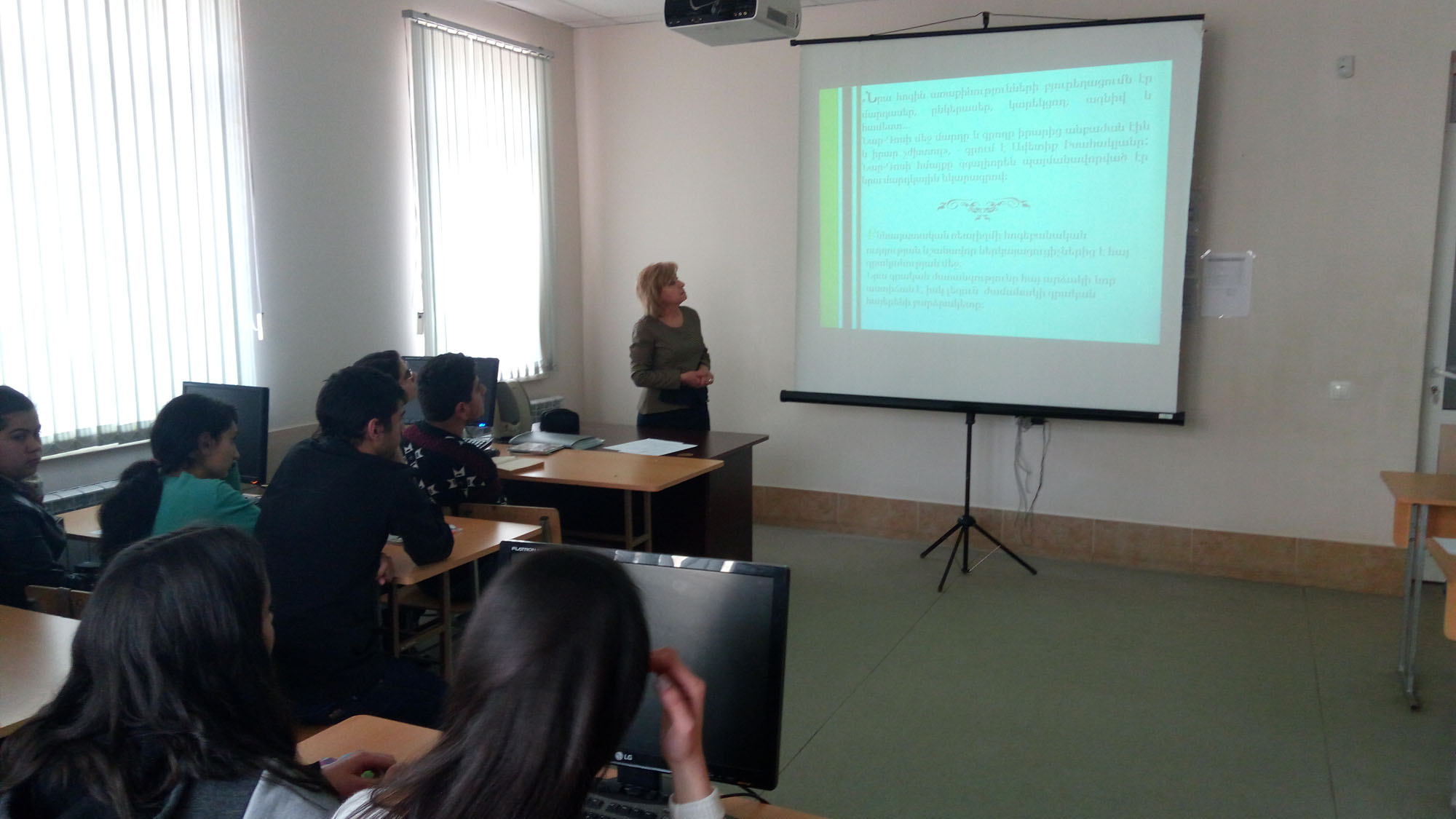 On February 22, at the Gyumri Craftsmen State School N4, was held an open lesson narrative discussion dedicated to Nar-Dos's " She I & " Book Dedication and the students of second-year  took part in it.