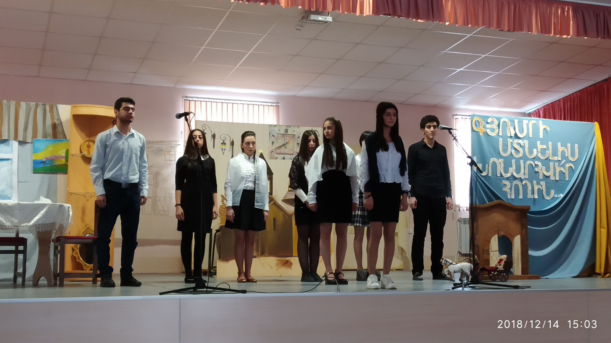 An ordinary December day ... From the other days that are not different. The schoolgirl arranges the bag, spits out and laughs with her mother. Suddenly there is a dreadful rumor. Everything is mixed up, laughs, laughs, sounds, and calls are left unanswered. The exciting episode of the theater started with the event titled "Straighten your back Gyumri", held at Gyumri Craftsman State School N4, dedicated to the 30th anniversary of the 1988 earthquake.