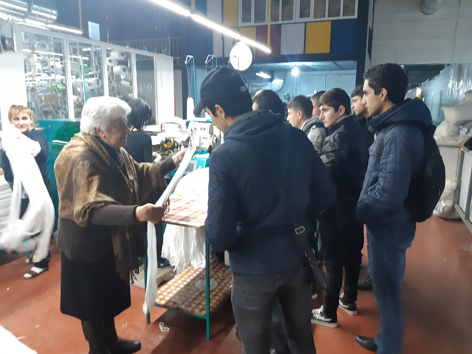 Mme Astonian, chef de la production et ingénieur de sécurité de l’usine ʺLentexʺ de Gumri a présenté aux étudiants les processus de production réalisés dans les différents ateliers de l’usine /coloration, tissage, emballage etc, les formes de l’organisation et les règles techniques de la sécurité.