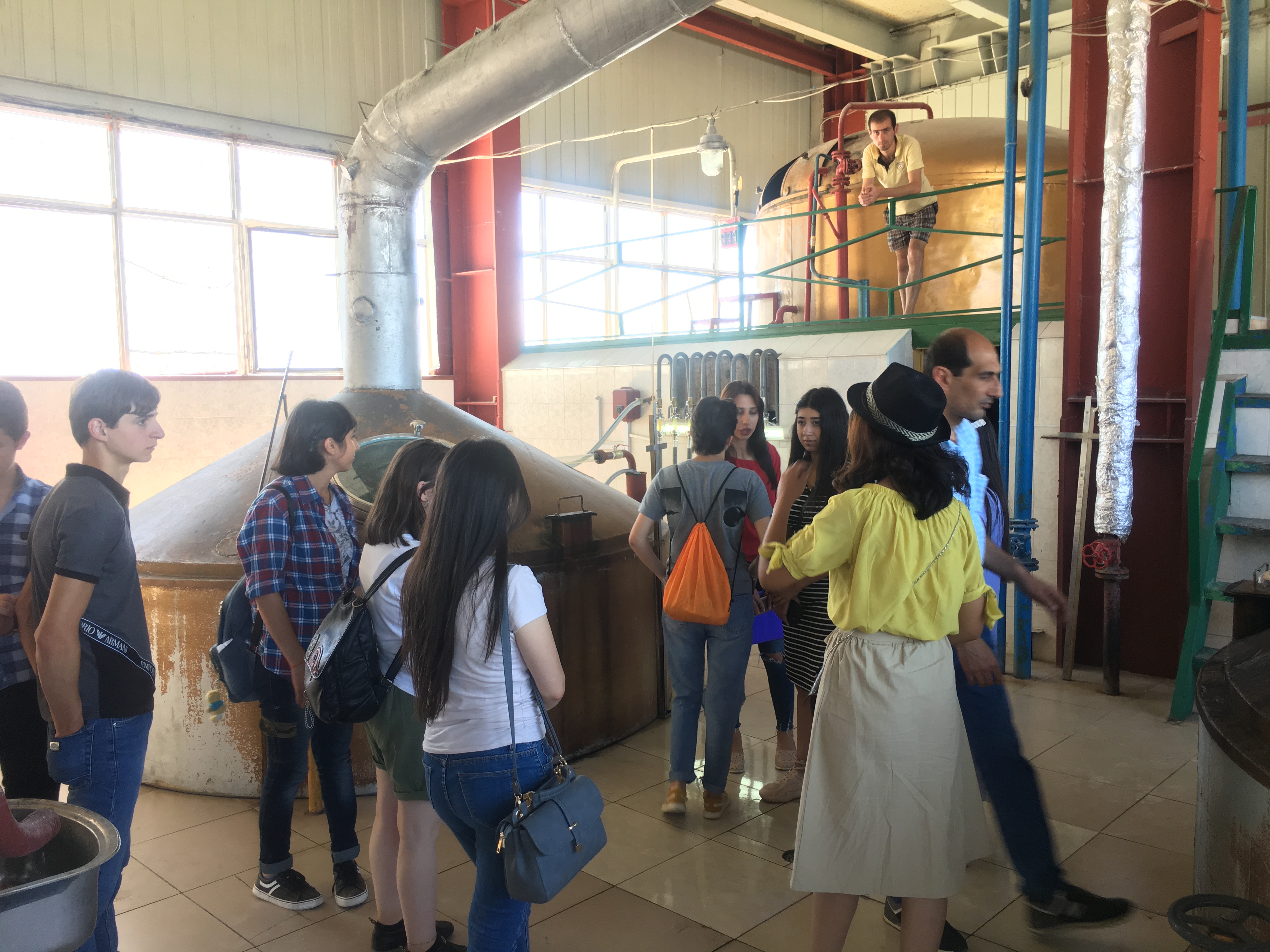 En continuant les visites cognitives dans les entreprises, cette fois les étudiants du Collège Technique d’État N4 de Gumri ont visité l’usine de la brasserie ʺGumriʺ. Les jeunes ont pris connaissance de la technique de production de la bière, des équipements et du caractère du travail.