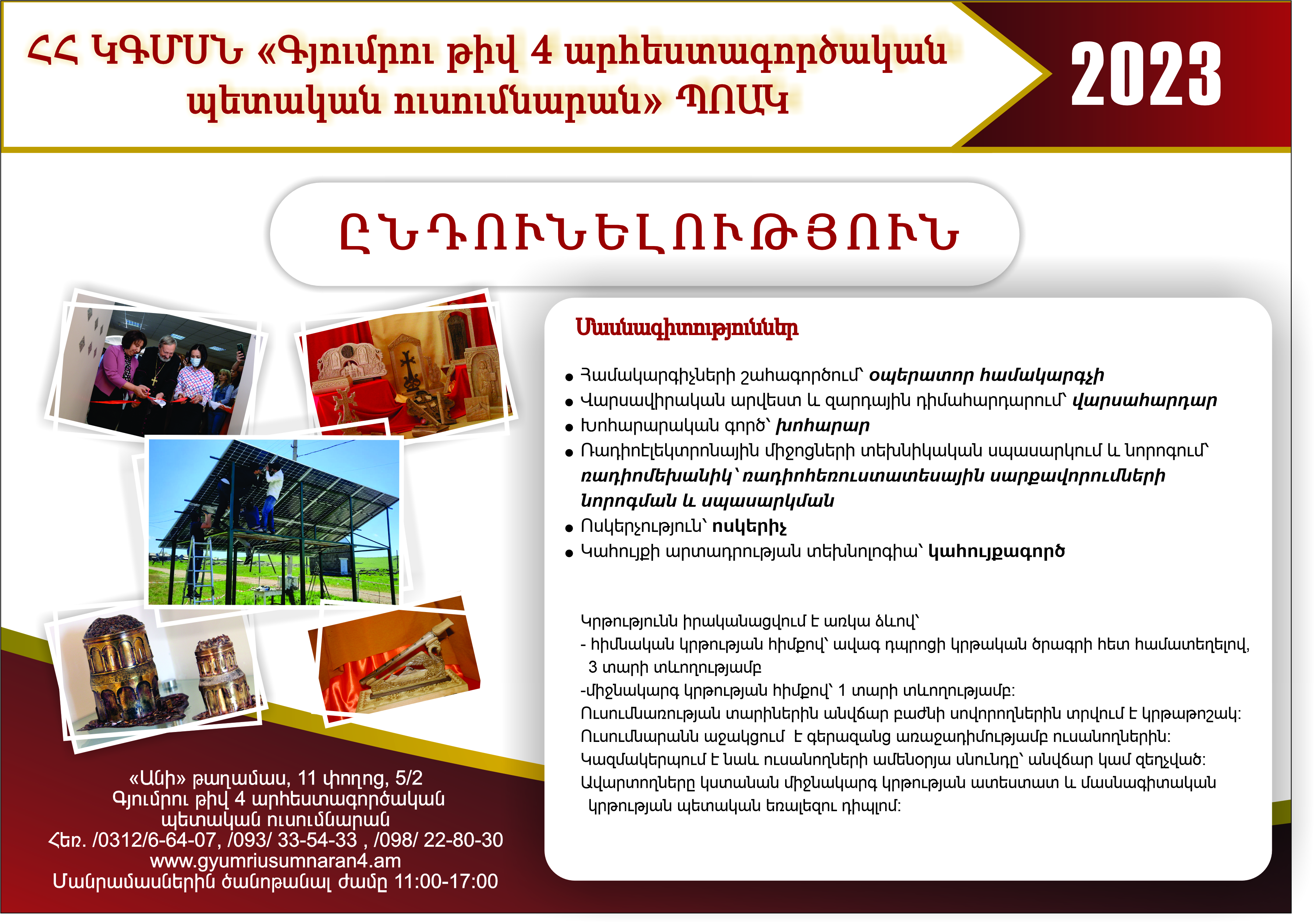 Քեզ ենք ներկայացնում ՀՀ ԿԳՄՍՆ Գյումրու թիվ 4 արհեստագործական պետական ուսումնարանի մասնագիտությունները:
