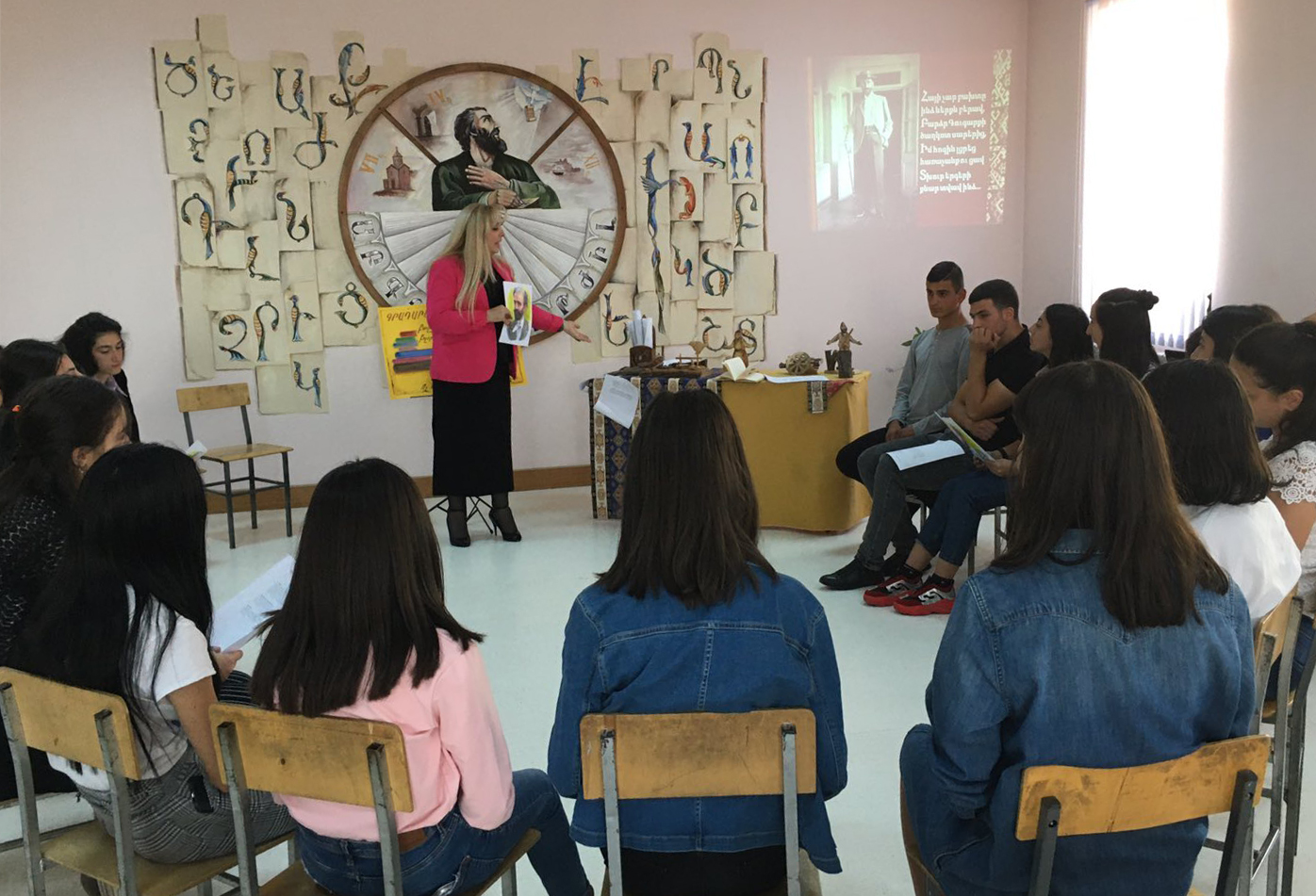 Ուսանողները ներկայացրին բանաստեղծի կյանքին և ստեղծագործությանը վերաբերող մանրամասներ, այնուհետև ցուցադրվեց Թումանյանի մասին տեսաֆիլմ: