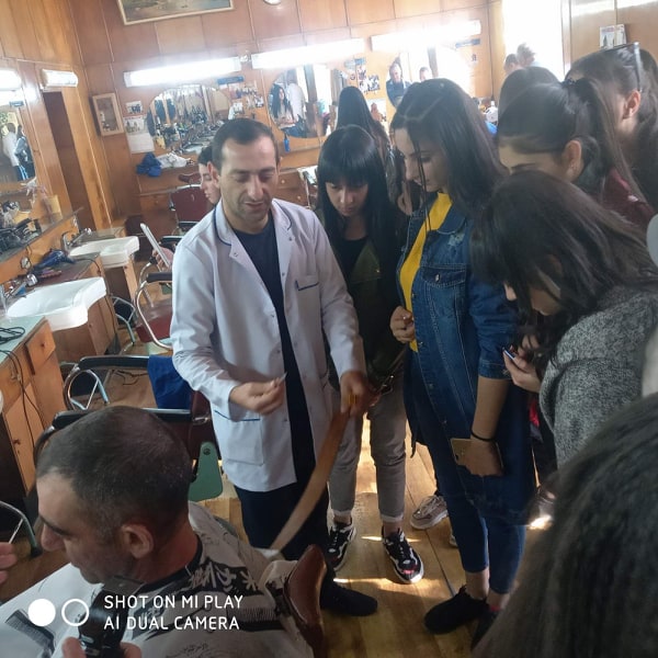76-ամյա պատմություն ունեցող Գյումրվա գեղեցկության սրահն ինքնատիպ աշխատանքային ոճով, կահավորանքով, քաղաքային կոլորիտով գրավեց ուսանողներին: Արհեստանոցի հմուտ վարպետներն ուսանողներին ներկայացրին արհեստանոցի ստեղծման պատմությունը, անվանի վարսավիրների աշխատանքային գործունեությունը, նրանց հետ կապված նշանակալի իրադարձությունները, ինչպես նաև ուսանողները մանրամասնորեն ծանոթացան  տղամարդկանց համար նախատեսված վարսավիրական հին գործիք-սարքավորումներին, պարագաներին, սպասարկման կարգ ու կանոնին, առանձնահատկություններին: