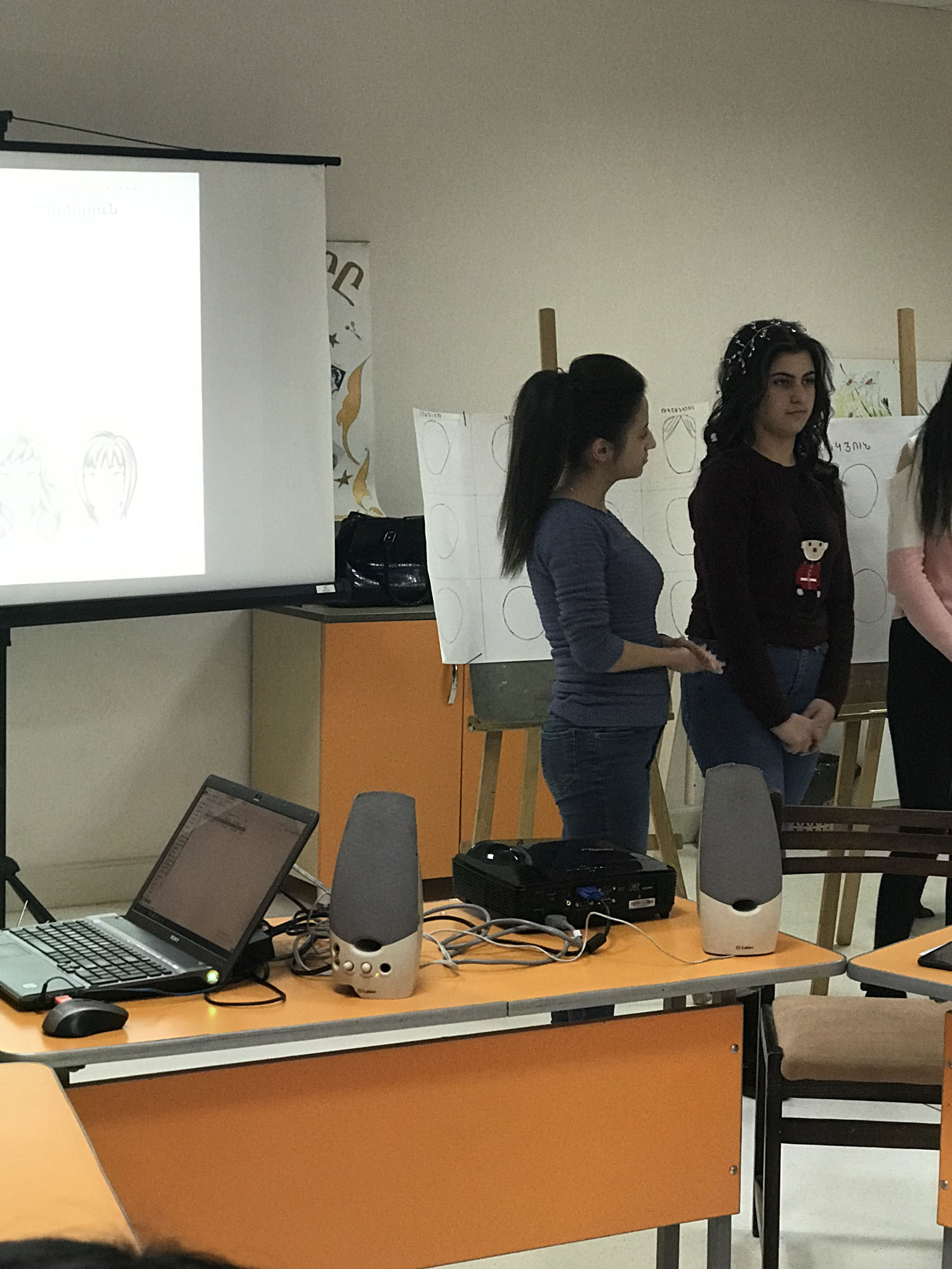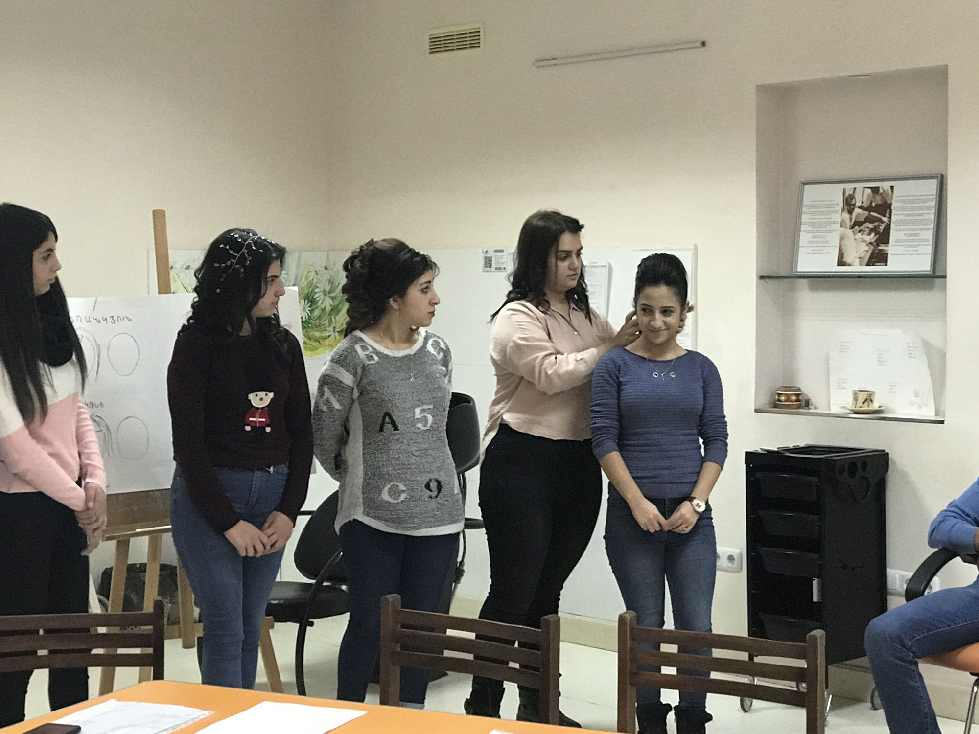 Ուսանողները բաց դասը սկսեցին «Գեղեցիկի արտացոլանքը և կնոջ անհատականությունը» նախաբանով: Ներկայացվեց «մազերի գույների և երանգների ներդաշնակությունը`ըստ տարվա եղանակների» թեմայի շուրջ հակիրճ տեղեկատվություն: