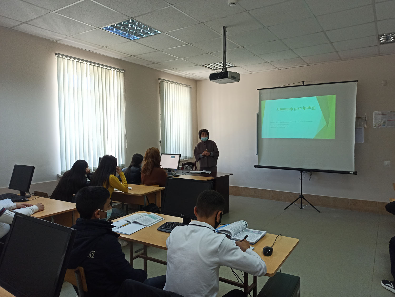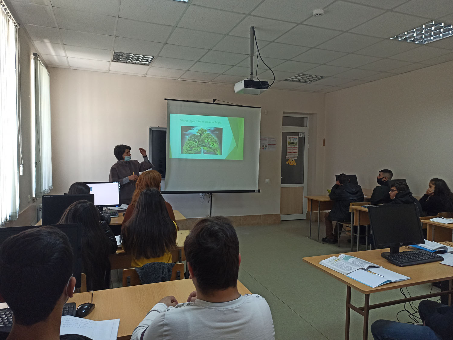Դասի ընթացքում քննարկվեցին կենսոլորտ, անտառը որպես էկոհամակարգ, բիոտիկ և աբիոտիկ գործոններ, օզոնային էկրան ենթաթեմաները և ներկայացվեց անտառը որպես բազմաֆունկցիոնալ, ինքնավերականգնվող լանդշաֆտային համակարգ: