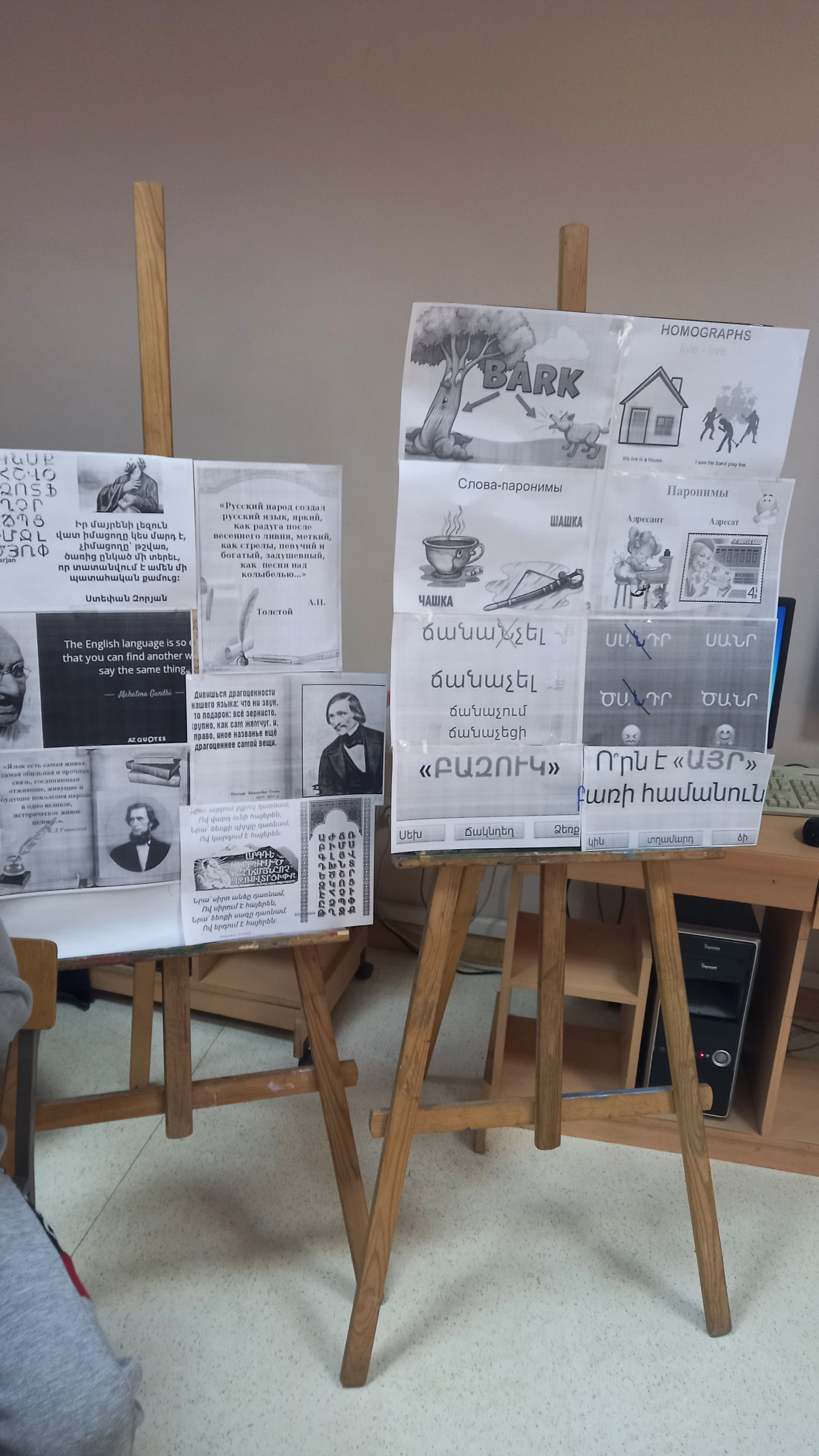 Բաց դասի ավարտին տեղի ունեցավ ուսանողների՝ վերոնշյալ դասի արդյունքում ձեռք բերած գիտելիքների ստուգման և ամփոփման փուլը, որի ժամանակ սովորողներն աշխատեցին տեքստերի վրա՝ ուղղելով բառագործածության սխալները /երեք լեզուներով/։
