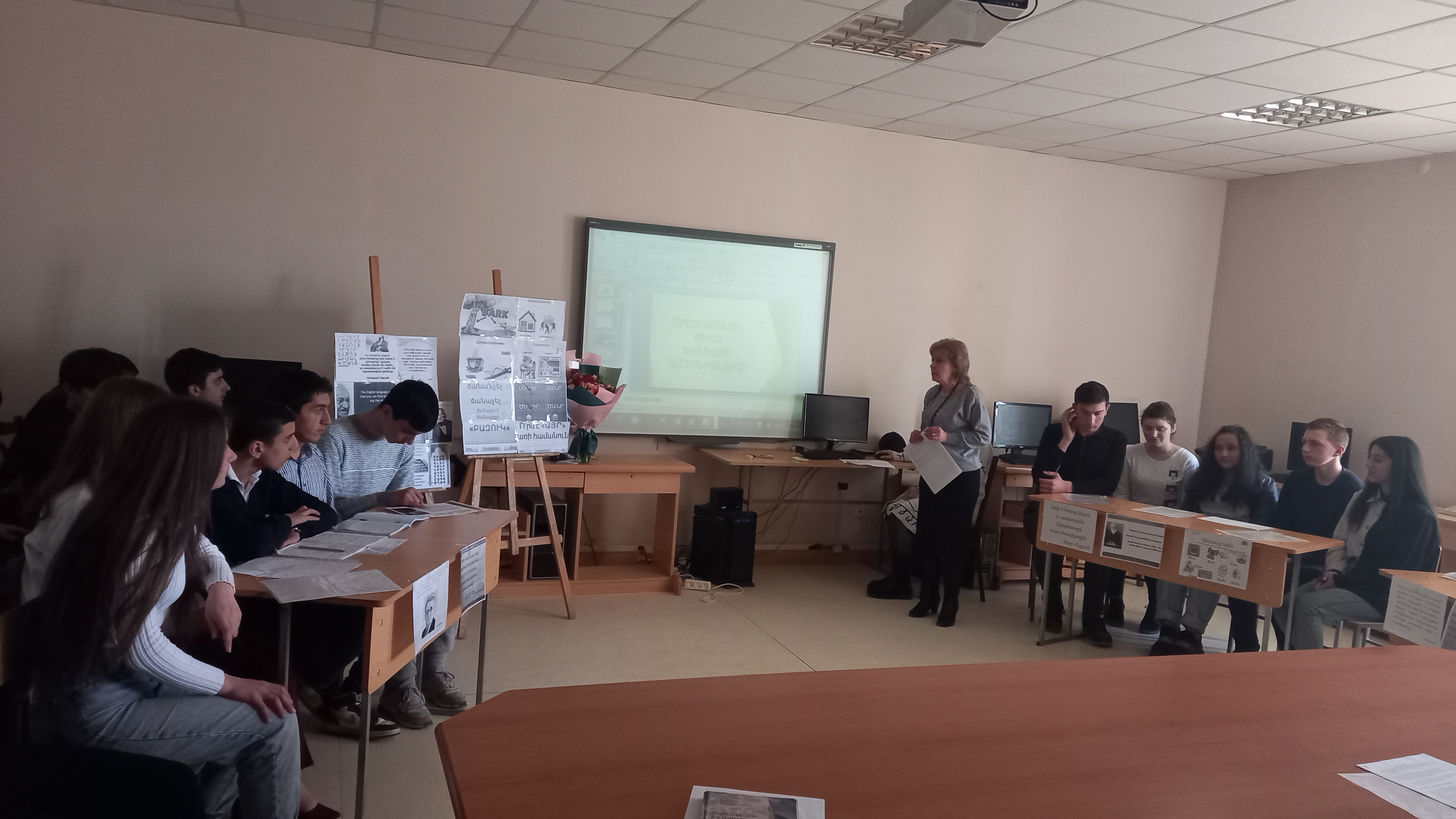Բաց դասն սկսվեց հայերենում, ռուսերենում և անգլերենում ընդհանուր քերականական և ձևաբանական երևույթների ներկայացմամբ, որն ուղեկցվեց  էկրանին լեզուների տոհմածառի ցուցադրմամբ, այնուհետև ուսանողները նշեցին, թե որքան կարևոր է ուղղագրության և ուղղախոսության կանոնները սովորելն ու իմանալը, քանի որ միայն այդ կանոններին հետևելով կարող ենք գրագետ ու հասկանալի խոսել։