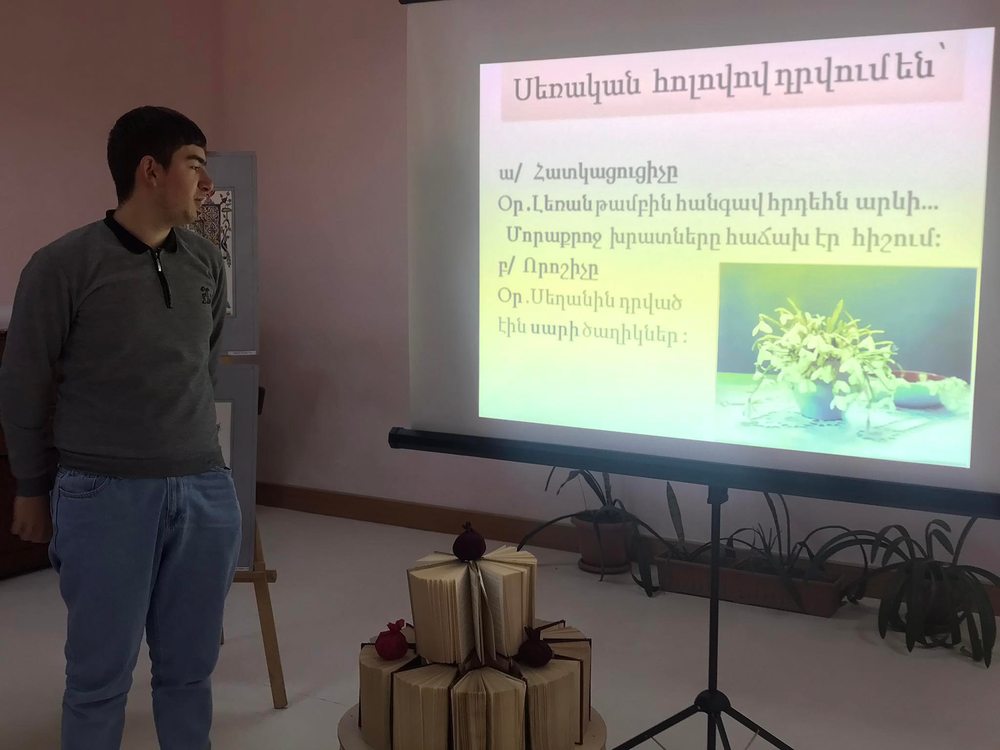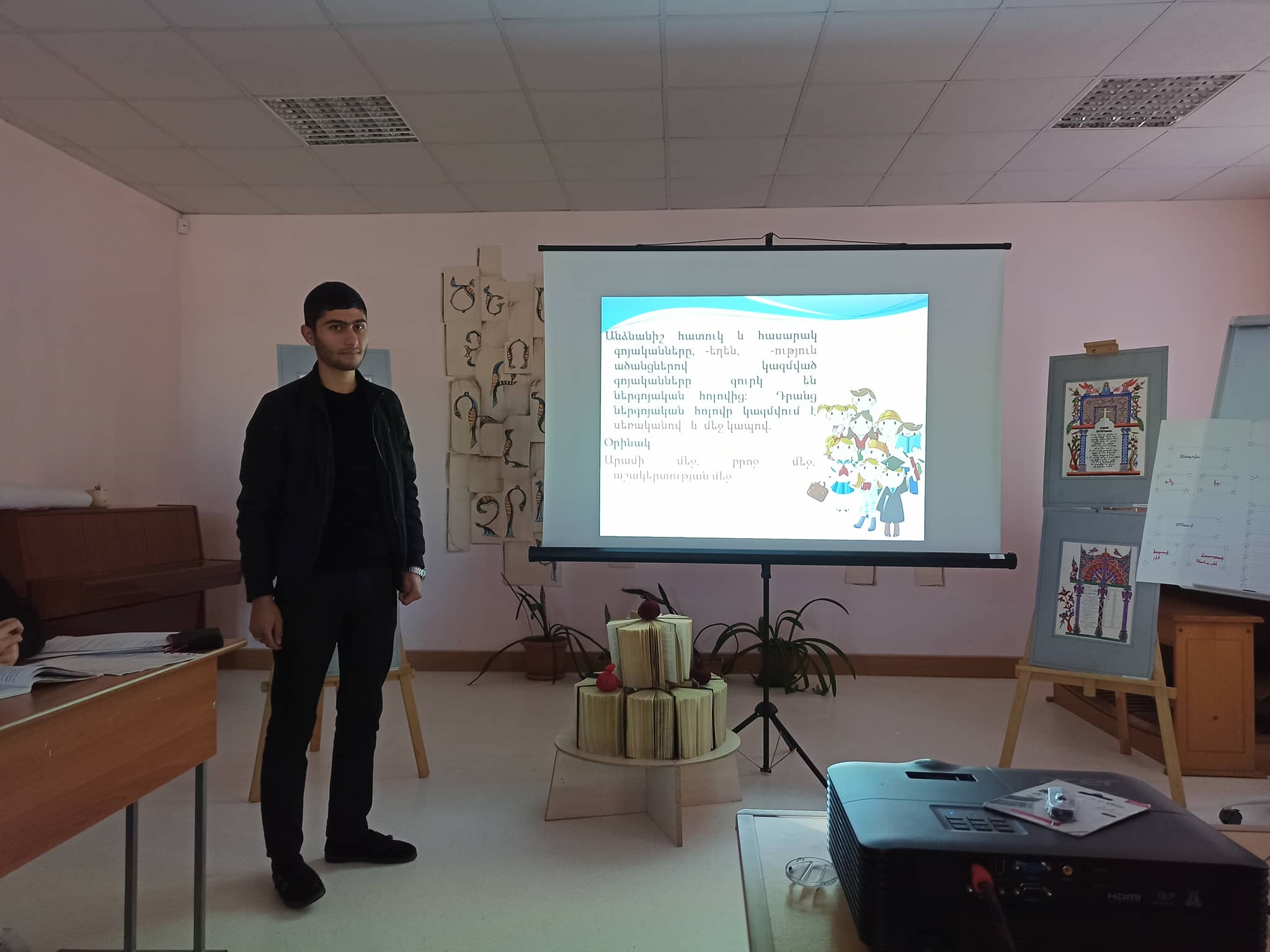 Ինքնատիպ և տրամադրող էր դասի կահավորումը․ ուսանողների կողմից ստեղծված գծապատկերային պաստառը, թեմատիկ հագեցած սահիկաշարը և տեսանյութը խթանեցին սովորողների համապարփակ գիտելիքների ներկայացումը և բանավոր խոսքին։