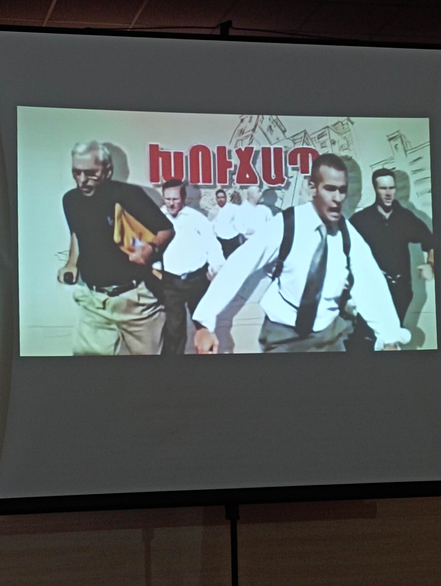 Սեմինար-պարապմունքի առանցքային կետում «Ինչպե՞ս պաշտպանվել երկրաշարժի ժամանակ» թեմայով ուսուցողական տեսանյութի դիտում-քննարկումն էր։